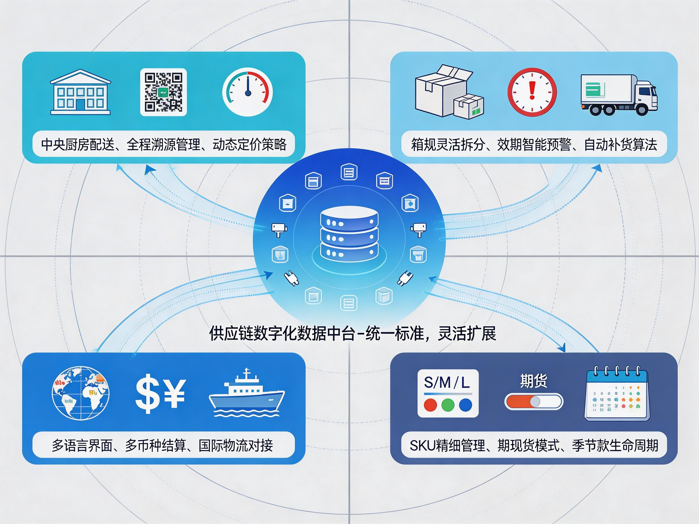 - 中央厨房协同:总部统一采购→分拣加工→门店自主订货